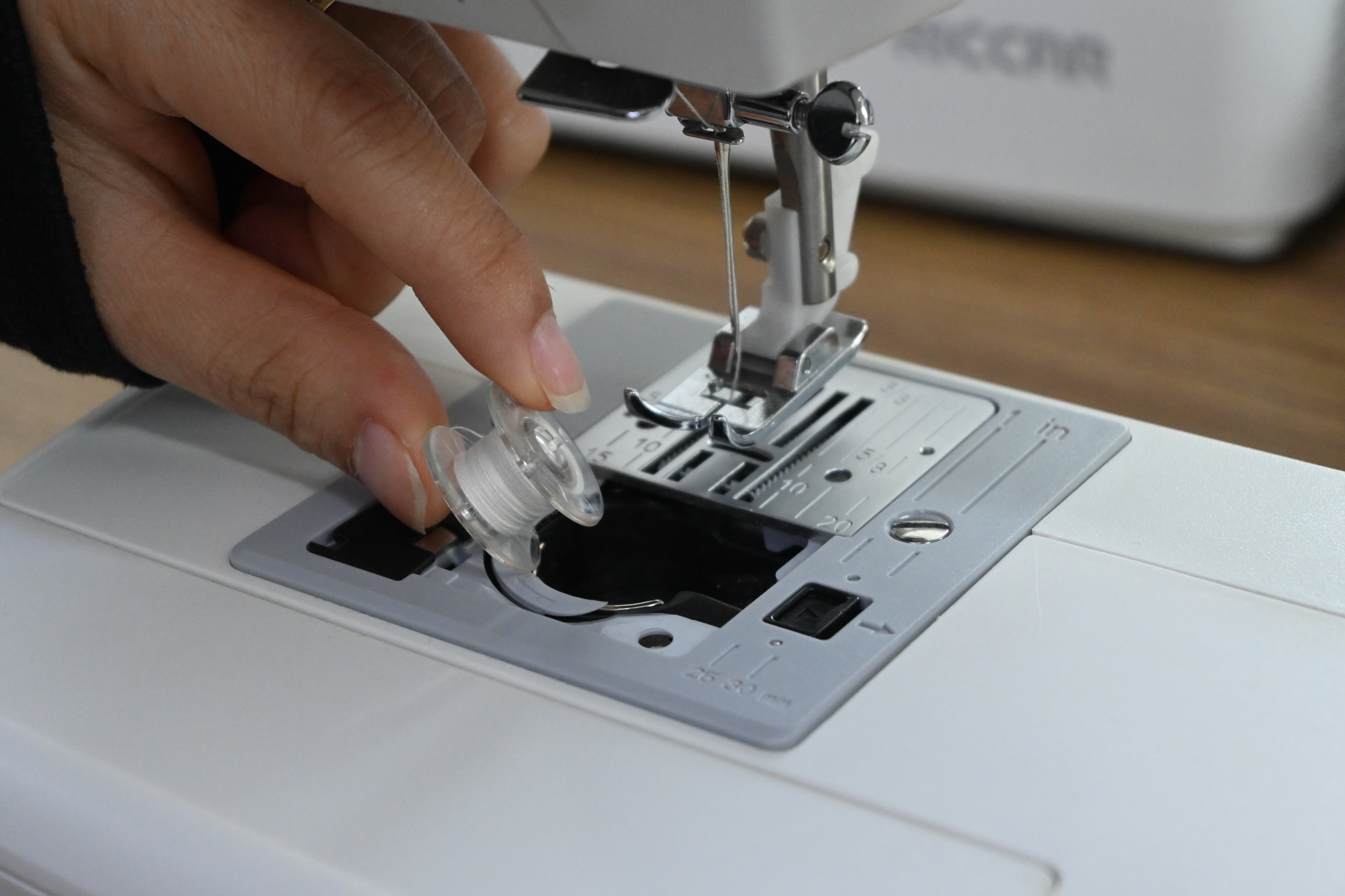 Sợi chỉ trên và chỉ dưới cần được đặt tách biệt, không xoắn vào nhau. Khi kéo thử một đoạn ngắn, chỉ phải trượt mượt, không bị giật hoặc đứt. Ở máy Riccar/NCC, bộ phận giữ chỉ được thiết kế chắc chắn, hạn chế tối đa tình trạng chỉ văng hoặc không ổn định. Đây là ưu điểm quan trọng với người mới học may – những người chưa quen thao tác nên rất dễ bị tuột chỉ.
