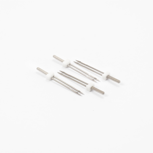 Khác biệt với các loại kim thông thường, kim máy may đôi sở hữu hai mũi kim song song được gắn trên cùng một trục. Thiết kế này cho phép tạo ra hai đường may chạy song song đều đặn, vừa mang tính trang trí vừa gia tăng độ chắc chắn cho sản phẩm.
